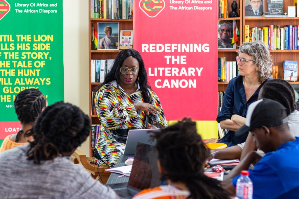 Main image: German-Ghanaian scholar, Andrea-Vicky Amankwaa-Birago and Professor Katarina Schramm giving a workshop to LOATAD Black Atlantic residents at LOATAD in January 2025. Image: Seth Avusuglo