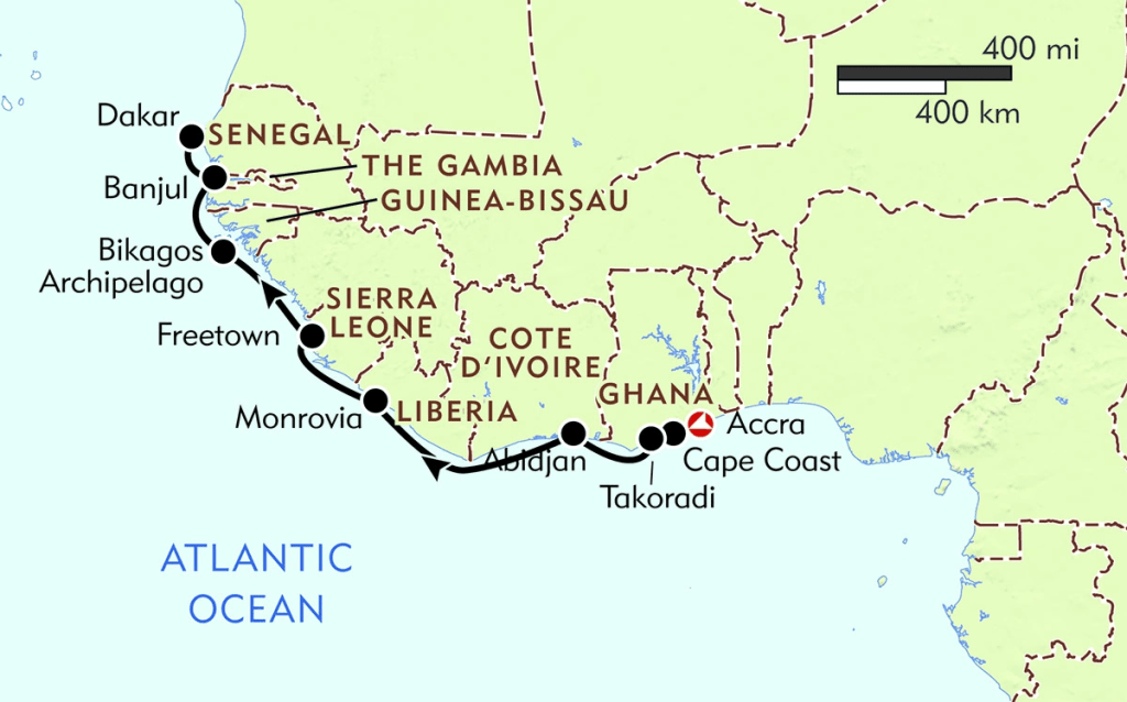 - Opportunities to engage with local histories, landscapes, and communities across Ghana, Côte d’Ivoire, Liberia, Sierra Leone, Guinea, Guinea-Bissau, Gambia, and Senegal.